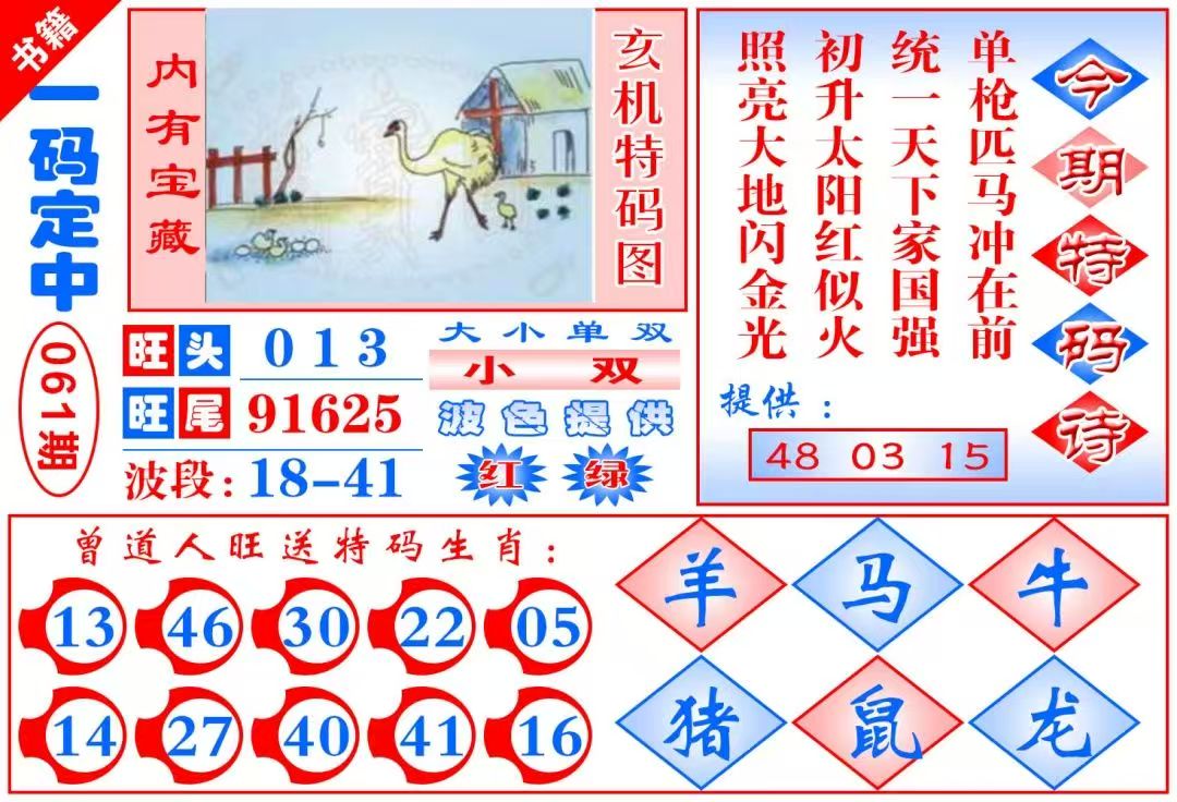 | 061期:发财单双【单數单數】开:准00 |