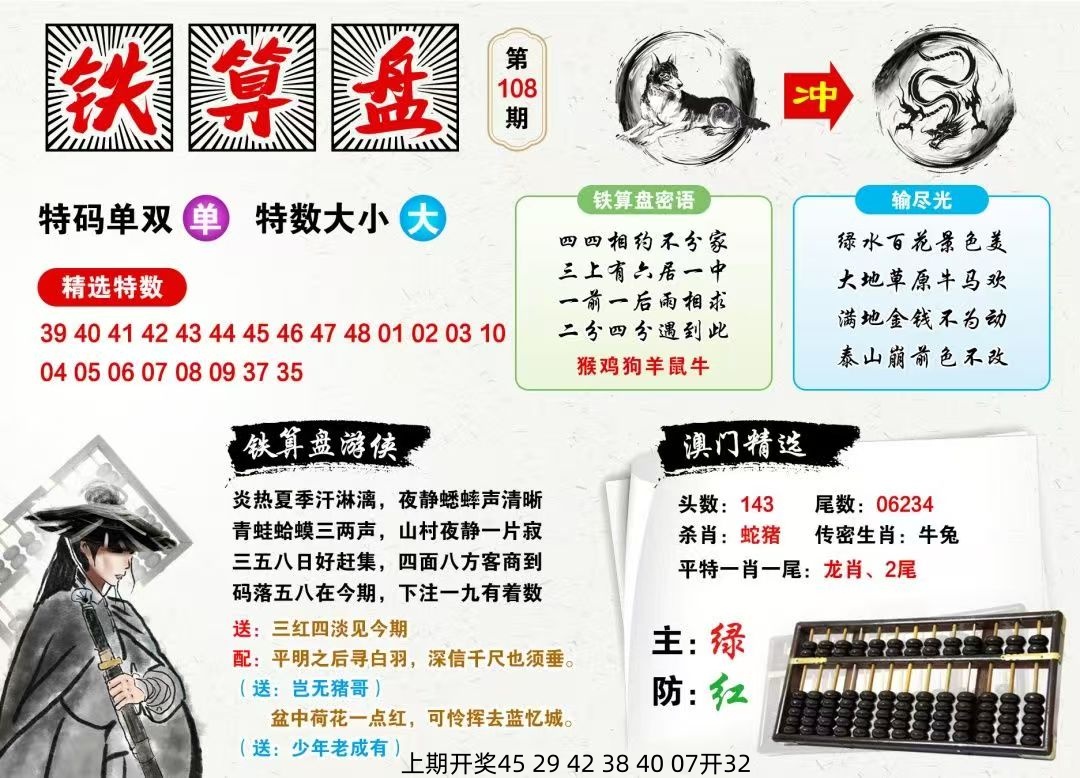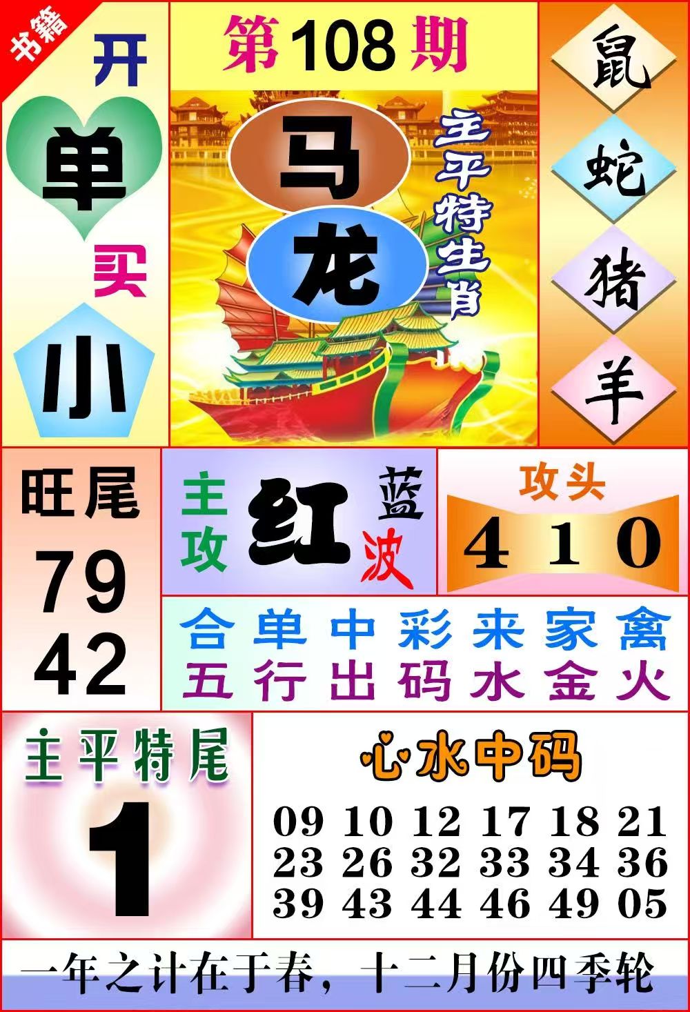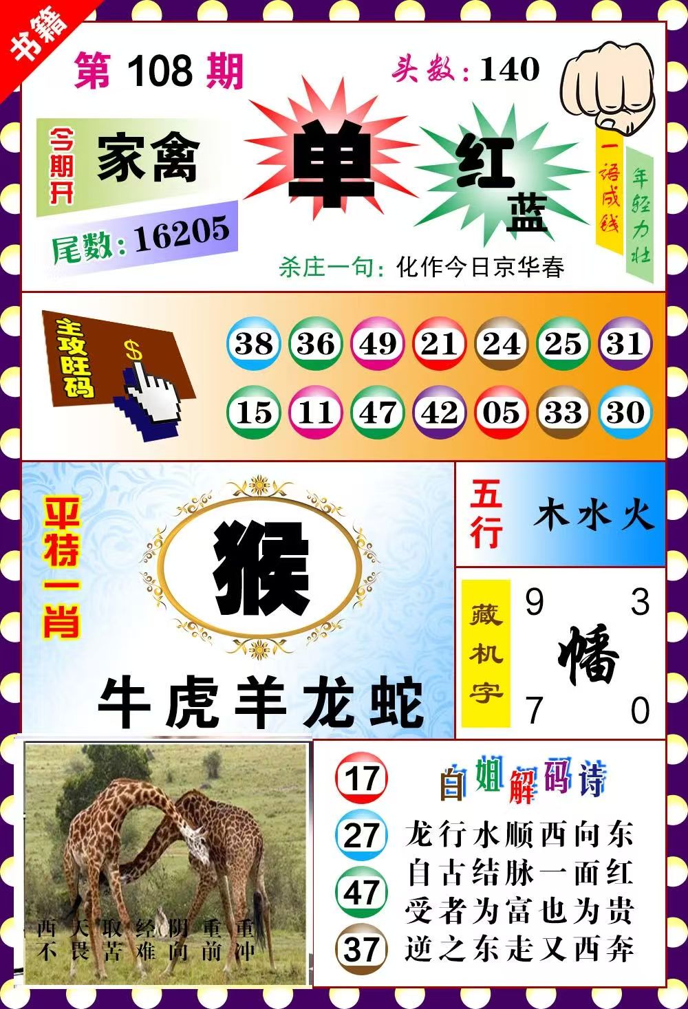 | 108期:五肖 | 兔鼠牛猴蛇 | 开:准00 |