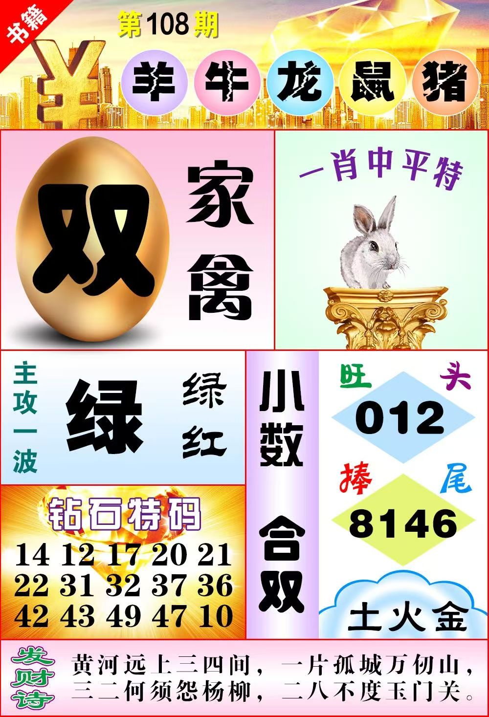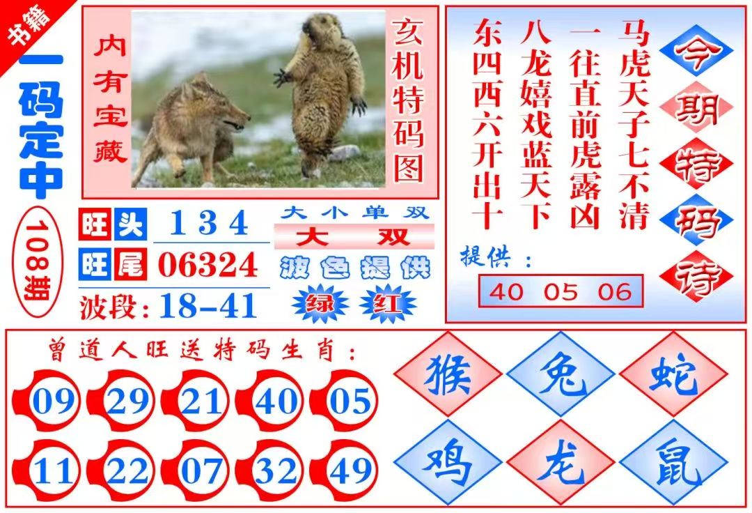 | 108期:四肖 | 兔鼠牛猴 | 开:准00 |