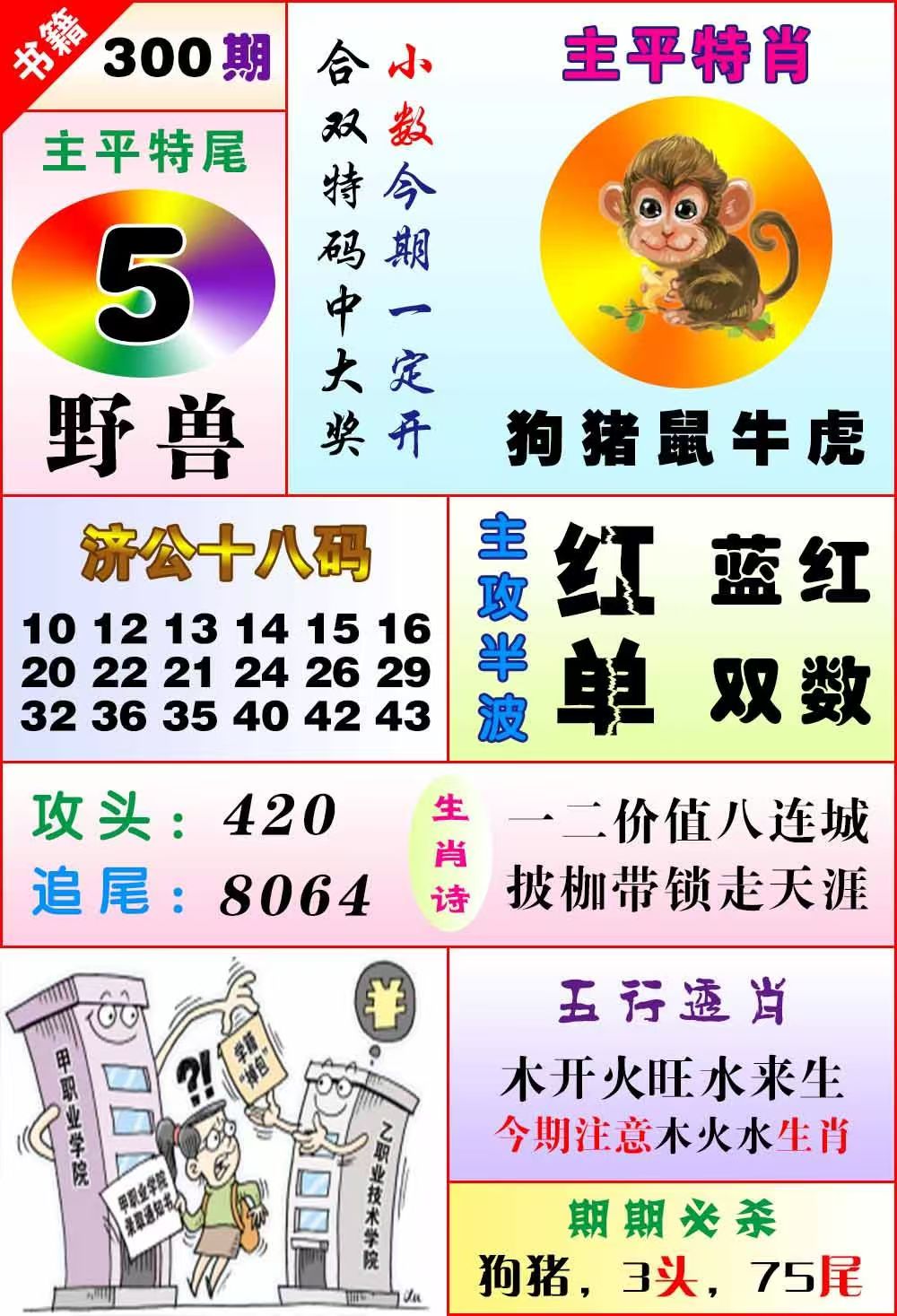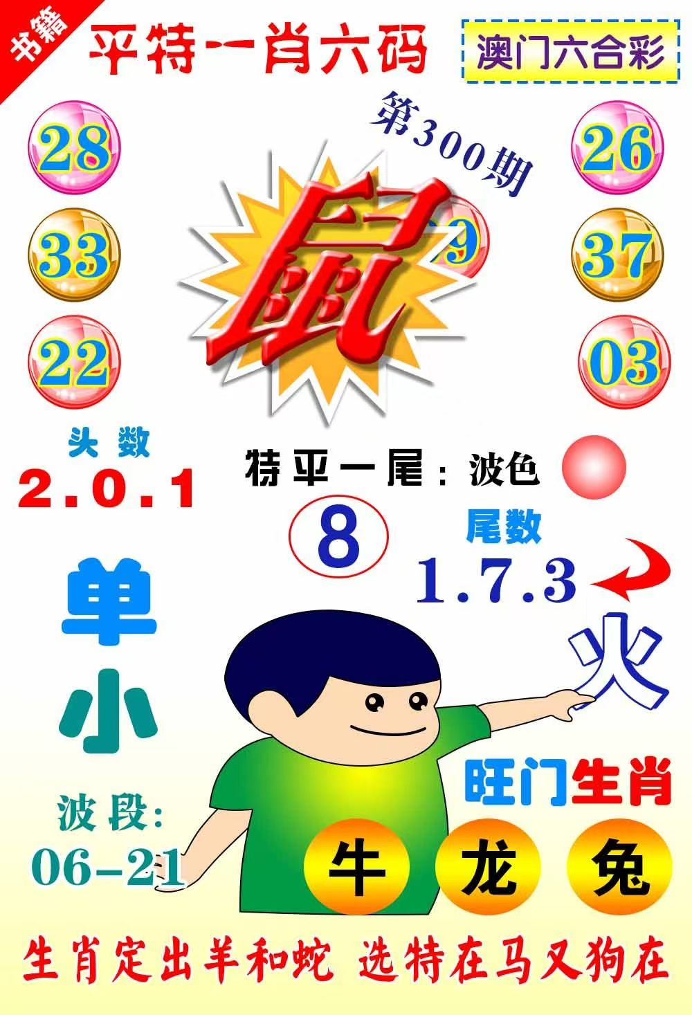 | 300期:五肖 | 龙马羊牛猴 | 开:准00 |